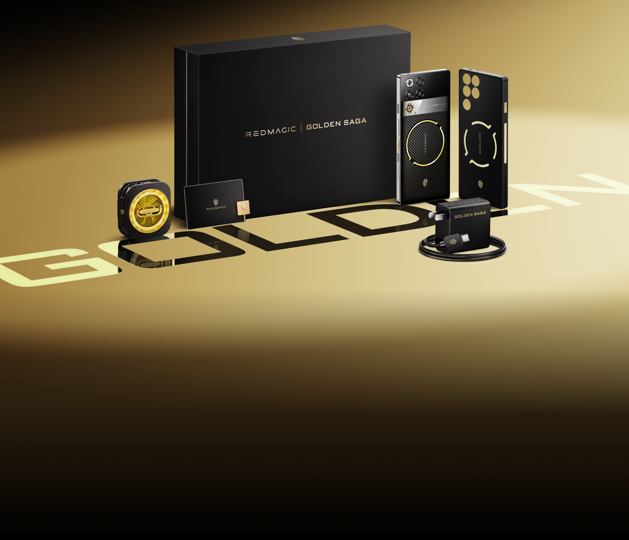 1. Gold-plated: Power Button, REDMAGIC & Golden Saga Logo, vapor chamber, Gold & silver composite air duct, Collector's Card and SIM Card Pin.