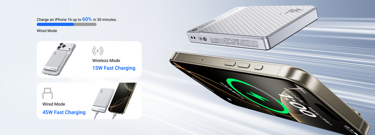 Equipped with a powerful 14N magnetic ring, simply bring the power bank close to your phone for precise magnetic alignment that stays securely attached without any slippage.